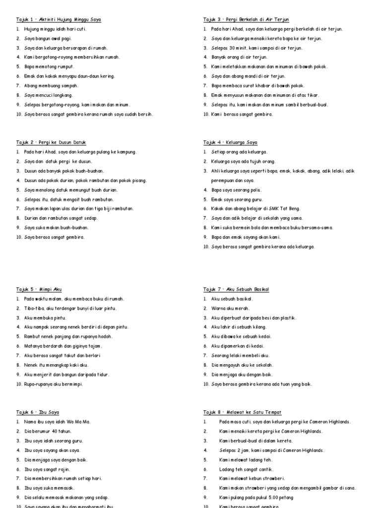 20 Karangan 10 Ayat Tema Keluarga Pdf