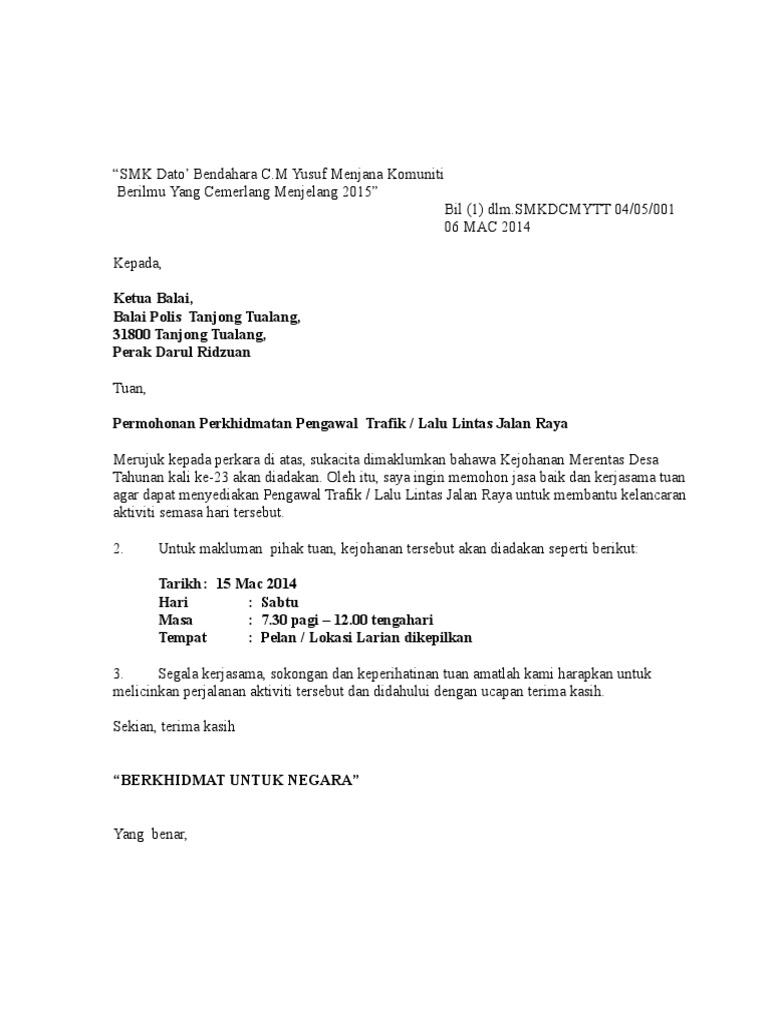 Surat makluman kepada polis there is document surat makluman kepada polis available here for reading and downloading. Seterusnya kami menghubungi pihak yang berkenaan untuk memberitahu mereka tentang projek yang kami jalankan dan seterusnya meminta kerjasama mereka untuk ditemu bual. Berdasarkan surat berkenaan semua aktiviti pemindahan babi atau mengeluarkan babi ke atau dari daerah itu adalah dilarang.