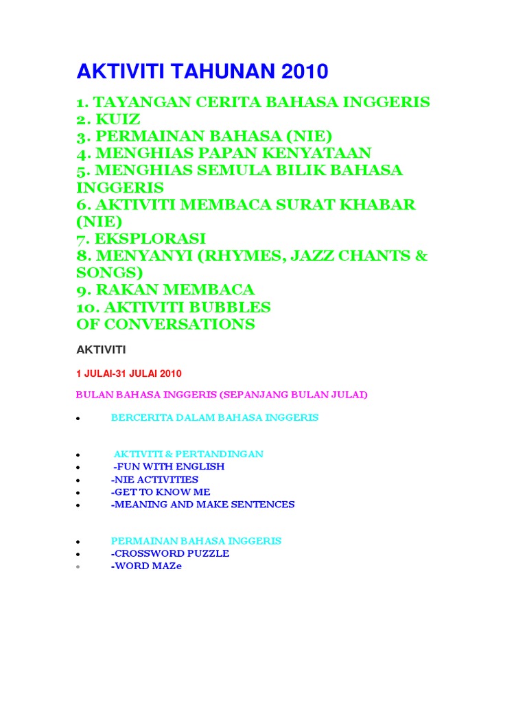 Aktiviti Tahunan Kelab Bahasa Inggeris Pdf