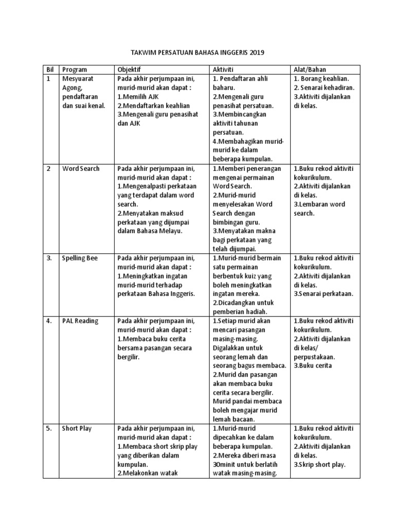 Takwim Persatuan Bahasa Inggeris 2019 Pdf