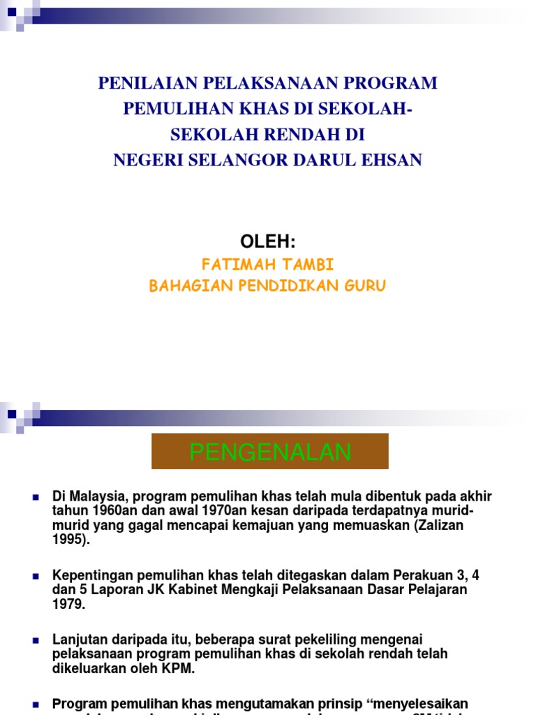 Penilaian Pelaksanaan Program Pemulihan Khas Pdf